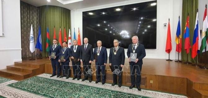 Le professeur et académicien Chau Van Minh, président de l'Académie des sciences et technologies du Vietnam (VAST), et Vladimir Karanik,...